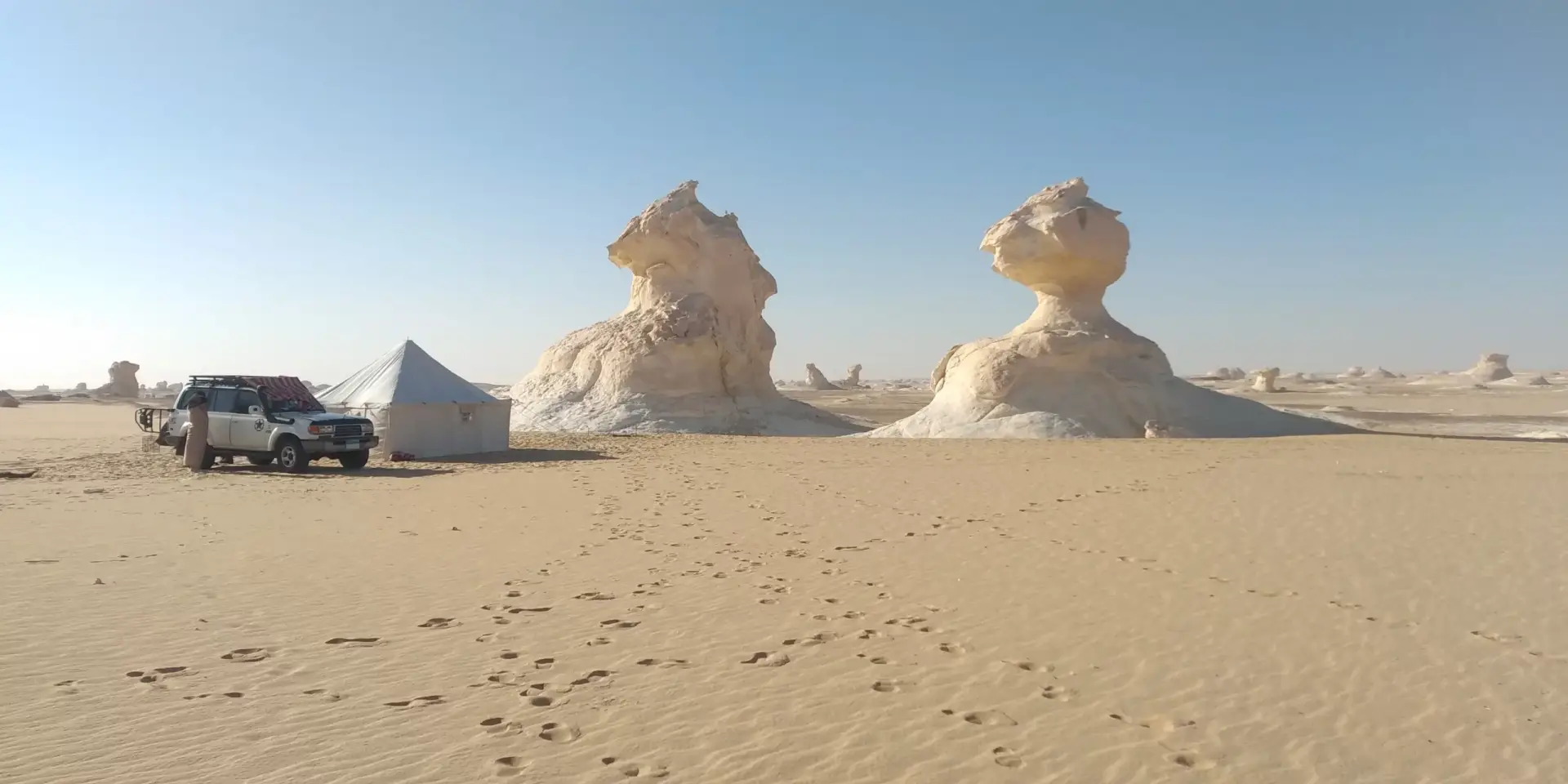 The White Desert is characterized by its abundance of natural rocks that represent some beautiful animals and birds as well as the nature of its land that resembles snow and includes the Western Desert + Black Desert + Crystal Mountain + Obstacles Mountains + Old White Desert + New White Desert and others Many natural places and you can camp in the white desert and enjoy Bedouin life, Bedouin food, Bedouin tea, Bedouin parties, photographing the sunrise and sunset, as well as photographing the charming stars and other things.